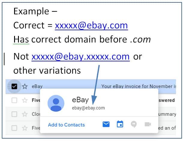 Despite the measures already mentioned, there are all kinds of viruses or bugs that can come via emails, usually inviting people to link to a dodgy website. These sites can look very authentic and convincing whilst being completely bogus. I get many such emails. When hovering over the alleged sender in any inbox, a small box appears as in the example shown. This often exposes suspicious emails and domains.